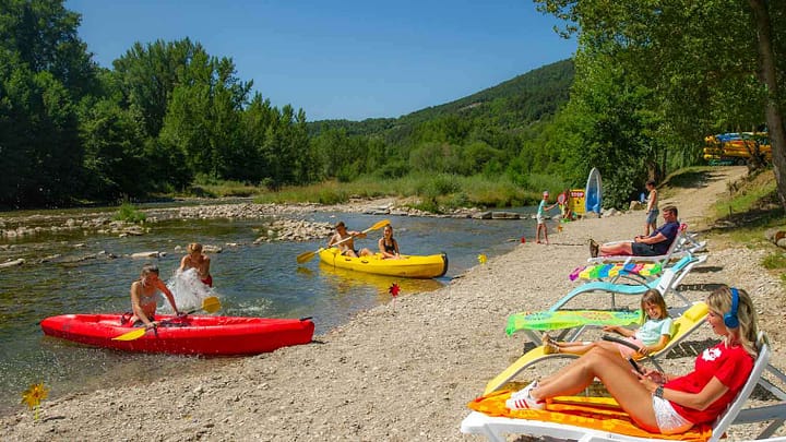 Deze vlakke langgerekte camping ligt aan de rivier de Tarn. De plaatsen worden gescheiden door heggen en struiken. De grote variëteit aan bomen en struiken geeft het verder strak ingedeelde terrein een groen karakter. Er is een kleine ligweide bij de rivier. Het rechthoekig zwembad met een waterglijbaan heeft een kleurig kleuterbad.