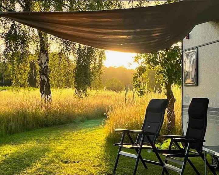 Een pittoreske parkeerplaats bij de frisse luchtgalerij “Fischerdiek.3” in het midden van Nedersaksen. Hier presenteren regionale kunstenaars hun werken op een weiland. Van lente tot herfst is iedereen van harte uitgenodigd om tussen de weerbestendige plaatjes te flaneren. In de directe omgeving van het bos- en natuurgebied “Sellingsloh” is een enkele parkeerplaats privé voorzien: Een paar meter van de bosrand op een groene plek onder bomen. De camping ligt niet ver van de provinciale weg en is zeer gemakkelijk te bereiken. Zeer natuurlijke omgeving en veel rust. Ideaal als startpunt voor wandeltochten en fiets- of motortochten. Het “midden van Nedersaksen” ligt op ongeveer 4 km afstand. Bovendien loopt de “Weserradweg” vlakbij. Gasten voor de parkeerplaats worden verzocht zich voor aankomst te registreren. Indien de parkeerplaats niet bezet of gereserveerd is, is inschrijven ook op zeer korte termijn mogelijk. Let op: de staanplaats heeft geen elektra- of wateraansluiting en er zijn geen sanitaire voorzieningen aanwezig. Huisdieren toegestaan, Uitzicht op de velden, Uitzicht op zonsondergang