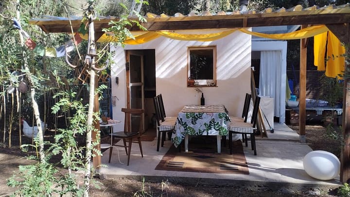In onze tuin, die tussen twee dorpen ligt, beleeft u de magie van een verblijf midden in de olijfgaarden, maar toch in een unieke oase van grote plantendiversiteit met grote pijnbomen, steeneiken, vijgenbomen en daardoor een grote verscheidenheid aan vogels en vogelgezang. U zult genieten van de natuur, hangmatten, de mogelijkheid om buiten te koken en in de winter, met de nodige voorzichtigheid, een kampvuur te maken. U heeft toegang tot twee droge toiletten en twee koude buitendouches (warm water alleen beschikbaar in de winter) en de accommodatie beschikt over een afgesloten terrein om fietsen, auto’s, busjes of kleine caravans veilig te parkeren. Het terrein beschikt over een schaduwrijke kampeerplek, speciaal voor kleine tenten en er is een vaste tipi-tent te huur (zie aparte aankondiging). Er is ook een vlak terrein met halfschaduw waar 2 campers of 2 auto’s met caravans van max. 5,5m lang kunnen staan. Pas op: Op het Spaanse platteland zijn er honden die de huizen van de buren in de gaten houden. Af en toe blaffen ze, zelfs ’s nachts. Het is iets wat ik niet kan beheersen. Ik raad mensen die licht slapen ten zeerste aan om niet bij mij te boeken of goede oordopjes mee te nemen. Huisdieren zijn niet welkom, omdat ze ’s nachts de honden van de buren opwinden en zo voor iedereen ongemak veroorzaken. Bedankt! BBQ, Drinkwater, Gasfornuis, Afwasbak, Keuken, Basis kookmaterialen, Koelkast, Borden en bestek, Koffie en thee, Eettafel, Koffiezetapparaat, Vuurkorf, Vuurschaal, Brandhout beschikbaar, Sauna, Sport- en spelspullen, WiFi, Hangmat, Sfeerverlichting, Trampoline, Toilet, Warme douche, Koude douche, Elektriciteit, Telefoon oplaadpunt, RV elektriciteit, Overdekte keuken, Regenschuilplaats, Speelplaats voor kinderen, Dieren op het terrein, Parkeren op het terrein, Uitzicht op de velden, Uitzicht op de heuvels, Uitzicht op het bos, Uitzicht op zonsondergang, Buiten zitgedeelte, Picknicktafel, Mobiele ontvangst, Barrièrevrije toegang tot de kampeerplaats, Barrièrevrije toegang tot toilet, Barrièrevrije toegang tot de douche, Barrièrevrije toegang tot gebouwen, Fietsenstalling