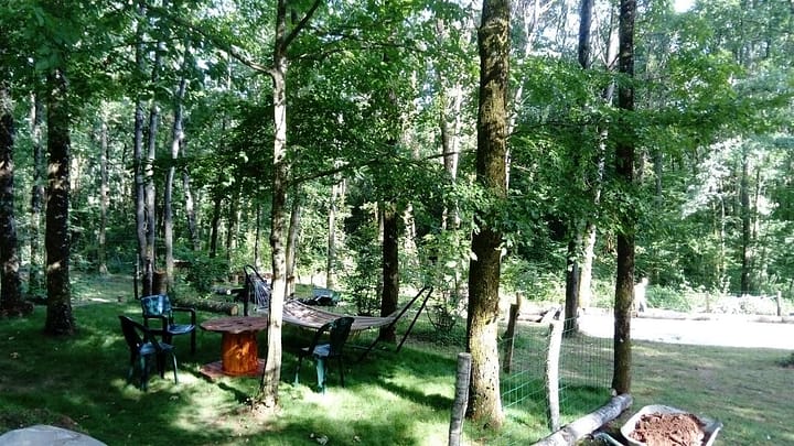 Kom en verblijf in onze oase van rust in het bos voor een unieke kampeerervaring in het bos van de Dordogne. We zijn ideaal gelegen om de historische schatten van de regio te verkennen en bieden accommodatie dicht bij de grotten van Lascaux en de Padirac-afgrond. Geniet van de landschappelijke schoonheid van de Dordogne en de Corrèze tijdens uw pittoreske vakantie in de Dordogne, terwijl u geniet van bekende visstekken. Onze camping met natuuractiviteiten Dordogne nodigt u uit om de wandelpaden in overvloed direct voor uw deur te verkennen. Onze serene omgeving biedt een ideale ruimte voor ontspanning en meditatie, aangevuld met een comfortabele leeshoek. We bieden een selectie Franse boeken om uw verblijf te verrijken. Geniet gratis van verse groenten die rond uw tent verkrijgbaar zijn. Ontdek de lokale charme door jeu de boules te leren spelen. Wij bieden een kampeerervaring inclusief ontbijt Dordogne. Kom en geniet van een authentieke ervaring met ons, Francis en ik, in onze hoek van het paradijs in de Dordogne. Drinkwater, Warm water, Toilet, Warme douche, Elektriciteit, RV elektriciteit, Picknicktafel