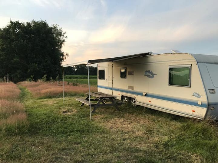 De caravan heeft 3 enkele bedden en een zithoek die je kan ombouwen tot een dubbel bed. Er is een volledig uitgeruste keuken met oven, koelkast en diepvriezer. Ook een toilet en douche zijn aanwezig. En natuurlijk verwarming voor tijdens de koudere periodes. BBQ, Gasfornuis, Keuken, Waterkoker, Vuurkorf, WiFi, Hangmat, Sfeerverlichting, Trampoline, Elektriciteit, Telefoon oplaadpunt, RV elektriciteit, Houtkachel, Huisdieren toegestaan, Overdekte keuken, Regenschuilplaats, Speelplaats voor kinderen, Dieren op het terrein, Parkeren op het terrein, Uitzicht op de velden, Uitzicht op het bos, Uitzicht op zonsopgang, Uitzicht op zonsondergang, Buiten zitgedeelte, Picknicktafel