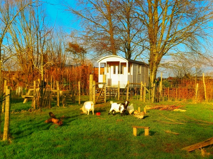 Er kan ev. een babybedje bijgezet worden. Naast de pipowagen is er een sanitair hutje met een ecologisch composttoilet en een kampeerdouche (bij koud weer kan er ook in huis gedoucht worden). Buiten kan je genieten van de dieren (2 schapen, 2 geiten, 6 konijnen, 2 kune kune varkens en een hoop kippen en Indische loopeenden), er is een speeltuin, een tokkelbaan, een kampenbouwzone, een speelcaravan, … Meer informatie over ons boerderijtje en de pipowagen vind je op de site van ‘Dorpsboerderij Nest’
