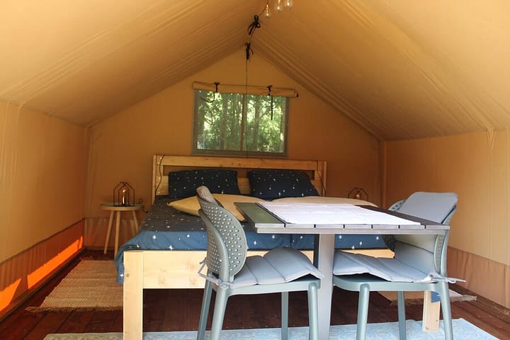 Onze glamping is geopend van 1 april t/m 30 september. Reserveren is mogelijk vanaf 2 nachten, in de maanden juli en augustus vanaf 3 nachten. Onze prijzen zijn inclusief toeristenbelasting en ontbijt. Honden zijn welkom bij een boeking van de Safaritent. Drinkwater, Warm water, Toilet, Warme douche, Huisdieren toegestaan, Picknicktafel