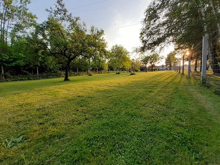 Een grote tuin met appelbomen en plaats om tot rust te komen en de kinderen te laten spelen. Geen last van buren, enkel misschien de pony en geitjes van de buurman.