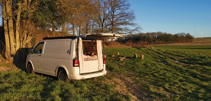 Een rustige plek midden in de natuur, parkeergelegenheid en een ruimte om tenten op te zetten. In de streek van de meren in het zuiden van België BBQ, Drinkwater, Vuurkorf, Toilet, Huisdieren toegestaan, Picknicktafel