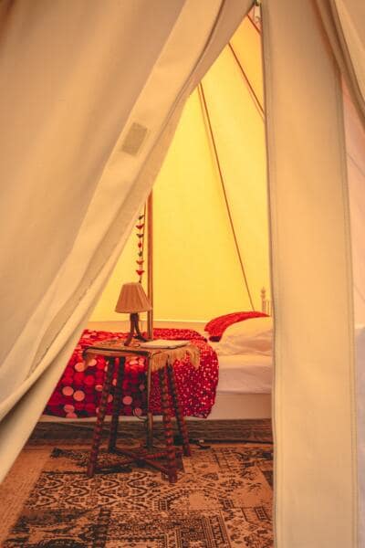We hebben ook een leuke flower-power caravan (back to the 70’s) voor de makkelijke kampeerder, die voorzien is van alle gemakken.