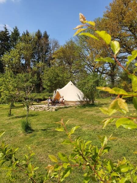 Ontdek onze nieuwe stijl camping “A l’ancienne” in Auvergne, waar u kunt verblijven in onze bell tenten of in ons chalet. Geniet van een prachtig uitzicht op de Combraille heuvels vanaf het hoogste gedeelte van de camping. In tegenstelling tot een tent en luchtbed bieden onze tenten een vast bed . Ook kunt u gebruik maken van de overdekte buitenkeuken en een sanitaire cabine met toilet, wastafel en luxe douche. Als klap op de vuurpijl kunt u, als wij aanwezig zijn, genieten van de sauna. We hebben ook een app gemaakt met veel tips voor lokale activiteiten in de omgeving voor een natuurvakantie.