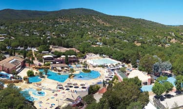 Camping bij , Côte d’Azur in Frankrijk. 1400m2 waterpret met glijbanen, lazy river etc.. Tennis, boogschieten, fitness, kids clubs t/m 18jr. Hele seizoen animatie, overdag en ’s avonds. Tussen bergen en zee: veel te ontdekken!.