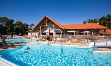 Camping bij , Zuid-West Frankrijk in Frankrijk. Schaduwrijke, kleinschalige gezinscamping. Roetsj van de 20 mtr lange glijbaan. 3 km van zee, ruik de zilte zeelucht. Struin over de boulevard van Soulac-sur-Mer.