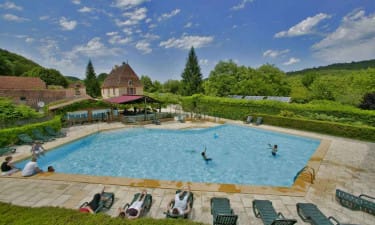 Camping bij Les Eyzies, Dordogne in Frankrijk. Gezellige kleine camping. Zwembad met apart peuterbad. Kanoën op de Vézère. Nabij prehistorische bezienswaardigheden.