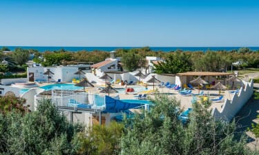 Camping bij , Côte d’Azur in Frankrijk. Nabij de stranden van de Camarque. Mooi aangelegd zwembad met glijbanen. Volop activiteiten, animatie en shows. Op 2 km afstand van het bedevaartsoord Saintes-Maries-de-la-mer.