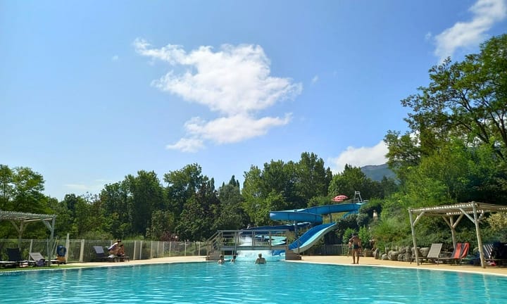 Camping bij , Drôme in Frankrijk. Leuk en gevarieerd aquapark. Overzichtelijke familiecamping. Diverse kinderclubs. Aan de rand van het regionale natuurpark Vercors.