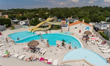 Camping bij , Vendée in Frankrijk. Waterpark met pierenbad, jacuzzi en glijbaan. Overdag en avond animatie. Mooi bos op loopafstand. Bezoek de eilanden Noirmoutier en Yeu.