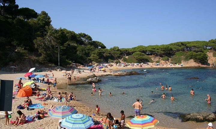 Camping bij , Costa Brava in Spanje. Direct aan het brede zandstrand. Actief animatieteam. Supermarkt. Op 400 meter van Platja d’Aro.