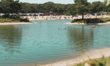Camping bij , Noord-Brabant in Nederland. Groot natuurbad met zandstrand. Minigolf, skelters, springkussen. Miniclub en discoavonden. Wandelen in natuurgebied Maashorst.
