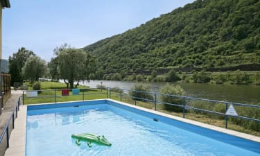 Camping bij , Rheinland-Pfalz in Duitsland. Verwarmd zwembad. Prachtig uitzicht over de Moezel en de wijngaarden. Eigen jachthaventje met boothelling. Bezoek het historische stadje Cochem.