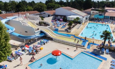 Camping bij , Vendée in Frankrijk. Groot waterpark met voor elk wat wils. Maak ook gebruik van de faciliteiten van Le Bois Dormant. Shuttlebus naar zee (4 km). Neem de Passage de Gois naar het eiland Noirmoutier.