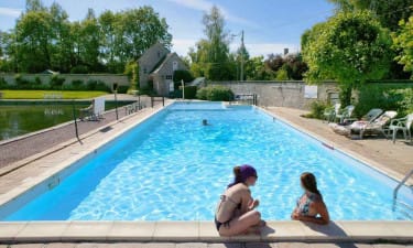 Camping bij , Normandië in Frankrijk. Kamperen in stijlvolle Engelse tuin rond kasteel. Zwembad met kindergedeelte. Wijn- en Calvadosproeverijen. Bezoek de invasiestranden op 25km.