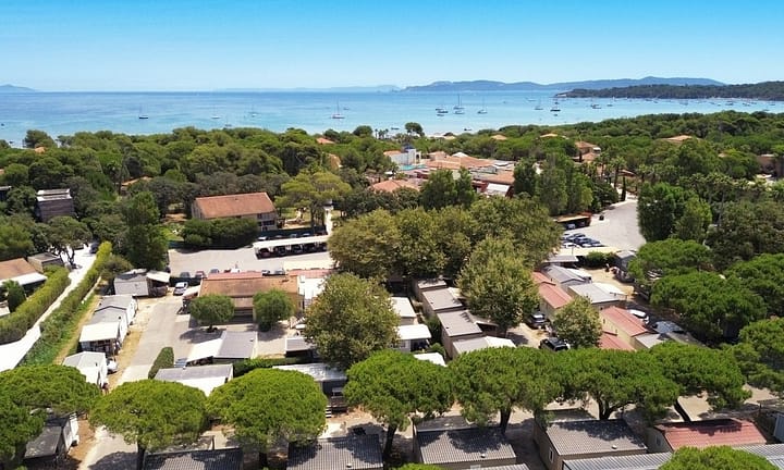 Camping bij , Côte d’Azur in Frankrijk. Rustige camping aan de Côte d’Azur. Verse baguettes. Vlakbij een goudgeel zandstrand. Bezoek de idylische eilanden voor de kust.