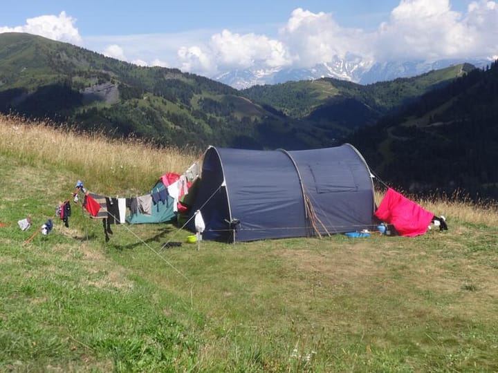 Ontdek onze bergcamping, gelegen in een alpenweide op 1550 meter hoogte, met een adembenemend uitzicht op de Mont Blanc in de prachtige Savoie. Onze locatie is met de auto bereikbaar via een 2,5 km lang stenen pad en biedt een unieke en authentieke ervaring voor natuurliefhebbers. Geniet van onze exclusieve camping met enkele tentplaatsen, gelegen in het hart van de bergen, enkele camperplaatsen en 4 gastenkamers op een authentieke alpenweide. Boek nu uw verblijf in onze rustige bergoase en geniet van een kampeerervaring midden in de natuur! Drinkwater, Warm water, Koffie en thee, Toilet, Warme douche, Koude douche, Huisdieren toegestaan, Parkeren op het terrein, Uitzicht op de velden, Uitzicht op de bergen, Uitzicht op zonsopgang, Uitzicht op zonsondergang, Afvalverwerking