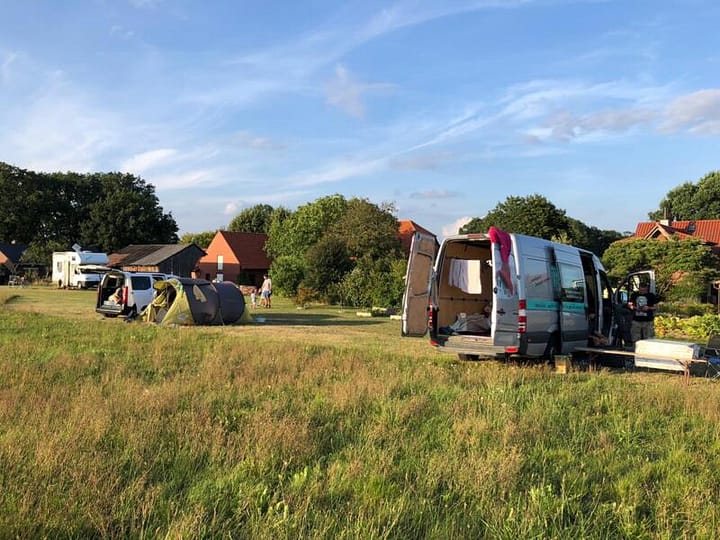 Hallo beste kampeerders, Welkom op onze idyllische plek, waar u kunt genieten van de perfecte combinatie van rust, ruimte en ontspanning. Laat het dagelijkse leven achter u en schakel gewoon uit. Ons terrein ligt aan de rand van Golddorf Brokeloh en bestaat uit een grote weide waar u heerlijk kunt zitten en ontspannen. Of u nu reist met een camper, caravan, trekker of tent. Water, elektriciteit en een barbecueplaats zijn ook beschikbaar. We hebben ook een aparte badkamer, die we speciaal voor onze kampeerders hebben ingericht. Mocht er tijdens uw verblijf een wasje gedaan moeten worden, dan zijn er ook een wasmachine en droger aanwezig. Naast de ontspannen sfeer bieden wij u ook enkele vrijetijdsmogelijkheden. U bent van harte welkom om onze eigen jeu de boulesbaan uit te proberen. Als enthousiaste kampeerders en oldtimerliefhebbers reizen wij in de zomer vaak met onze vintage tractoren. Kom langs, we kijken ernaar uit je te zien! BBQ, Drinkwater, Warm water, Afwasbak, Keuken, Basis kookmaterialen, Koelkast, Borden en bestek, Koffie en thee, Eettafel, Waterkoker, Koffiezetapparaat, Vuurkorf, Vuurschaal, Brandhout beschikbaar, Sfeerverlichting, Toilet, Warme douche, Elektriciteit, RV elektriciteit, Huisdieren toegestaan, Overdekte keuken, Regenschuilplaats, Parkeren op het terrein, Uitzicht op de velden, Uitzicht op zonsopgang, Uitzicht op zonsondergang, Buiten zitgedeelte, Binnen zitgedeelte, Picknicktafel, Mobiele ontvangst