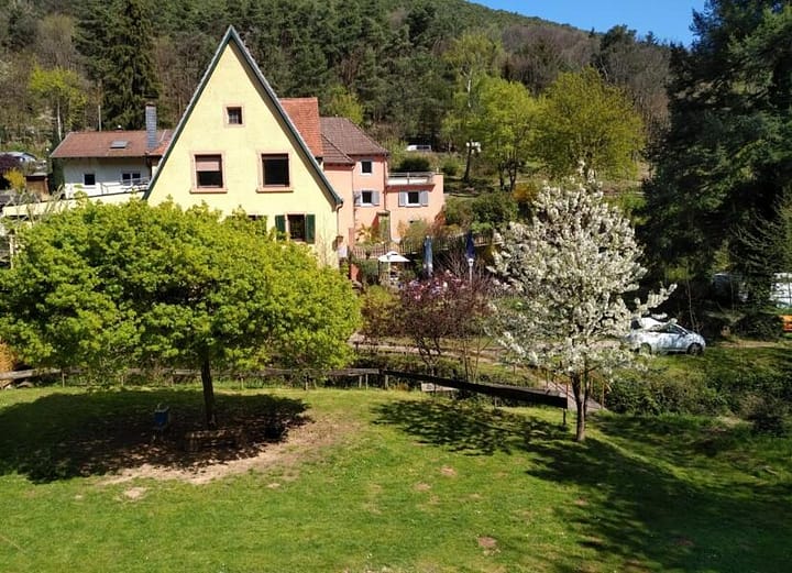 Onze natuurlijke camping ligt tussen wijngaarden en bossen. Het plein is rond het landgoed “Wappenschmiede” gegroepeerd en in verschillende terrassen aangelegd. Een oase voor natuurkampeerders. U kunt kamperen onder een grote sequoia of direct naast de Kropsbach. Drinkwater, Warm water, WiFi, Toilet, Warme douche, RV loosplaats, Huisdieren toegestaan
