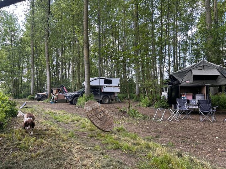 Verscholen diep in een schilderachtig bos, waar alleen degenen met een tent of een robuuste 4×4 terreinwagen kunnen komen, wacht een onvergetelijke kampeerervaring. Bij aankomst op deze afgelegen plek kun je je tent opzetten op een weelderige ondergrond van zacht mos en bladeren, te midden van de overweldigende pracht van de natuur. Zodra de avond valt, brengt de aanwezige vuurschaal een warme gloed die perfect is voor een magisch kampvuur onder de glinsterende sterrenhemel.