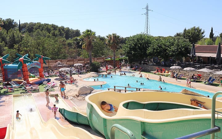 Het terrein is behoorlijk geaccidenteerd. De huuraccommodaties liggen op de hogere niveaus. De staanplaatsen zijn beneden aan straatjes. Ze zijn gescheiden door heggen en bomen. Een aantal plaatsen heeft eigen sanitair, deze plekken zijn doorgaans kleiner dan de andere plaatsen. Vanaf het terras bij het restaurant kijkt je uit op het fraaie, fantasierijk gevormde lagunebad. Op de ligbedden rondom het bad kun je lekker luieren. Kinderen vermaken zich in het kinderbad of op de waterglijbaan.