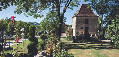 De staanplaatsen, deels beschut, liggen op een heuvel. In het bos zijn de plaatsen gescheiden door muurtjes van opgestapelde stenen en boomresten. Op het andere deel bepalen heggen en planten de afscheiding. Zwembad en restaurant bieden een panoramisch uitzicht over de omgeving. Het kinderzwembad is 30 cm diep. De huuraccommodaties liggen afgescheiden en in de buitenranden van de camping. Let op: smalle en steile toegangsweg.