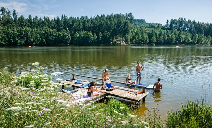 De camping is onderdeel van een recreatiegebied met een recreatieplas. De vlakke staanplaatsen bevinden zich op een licht geaccidenteerd terrein en zijn afgebakend door hagen. Een deel van die plas is omgetoverd tot een schitterend natuurbad. De camping is geschikt voor mensen met kinderen. Het recreatiemeer heeft veel watersportfaciliteiten en is eveneens geschikt om te vissen.