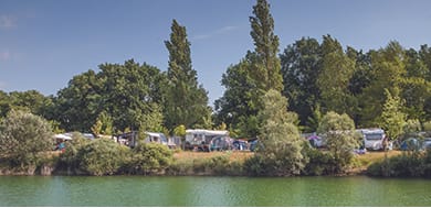 Dit terrein ligt tussen drie meren. In één meer is een afgebakend recreatiedeel en een afzonderlijke waterglijbaan. De vlakke plaatsen liggen aaneengeschakeld langs wegen en paden. Ze zijn gescheiden door hoge heggen en bomen. Er is een zwembad en een tennisbaan. In de meren kan men vissen op forel. Er is een klein zandstrand met parasols en een ruim grasgedeelte met bomen voor de schaduw. Er zijn speeltoestellen, een houten pier en stranddouche. Dit terrein ligt tussen drie meren. In één meer is een afgebakend recreatiedeel en een afzonderlijke waterglijbaan. De vlakke plaatsen liggen aaneengeschakeld langs wegen en paden. Ze zijn gescheiden door hoge heggen en bomen. Er is een zwembad en een tennisbaan. In de meren kan men vissen op forel. Er is een klein zandstrand met parasols en een ruim grasgedeelte met bomen voor de schaduw. Er zijn speeltoestellen, een houten pier en stranddouche.