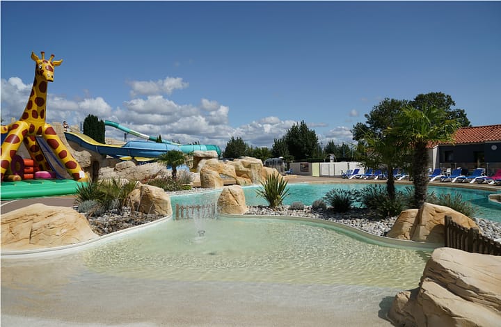 Het vlakke, langwerpige terrein ligt tussen de D38 en een kanaaltje waar kampeerders kunnen kanoën en vissen. De toeristische plaatsen en de huuraccommodaties liggen verspreid over het terrein. Er zijn een overdekt zwembad, een openluchtbad, een speeltuin en een multisportterrein met daarnaast fitnesstoestellen in de openlucht.