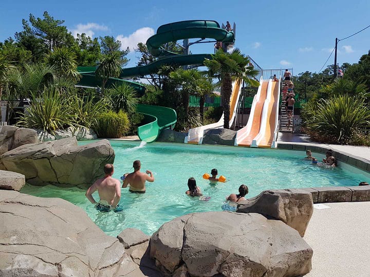 De camping ligt in een bos op loopafstand, een kleine 2 km, van de kust met lange zandstranden. De staanplaatsen zijn afgebakend door hagen. Ook worden er stacaravans, ecolodges en luxe cottages verhuurd. Op de camping vind je een miniclub, een restaurant (ook afhalen), een bar en een zwempark met glijbanen. Het peuterbad heeft alles van een waterspeeltuin. Verder is er een bubbelbad en een stromende rivier. In het hoogseizoen is er een uitgebreid animatieprogramma.