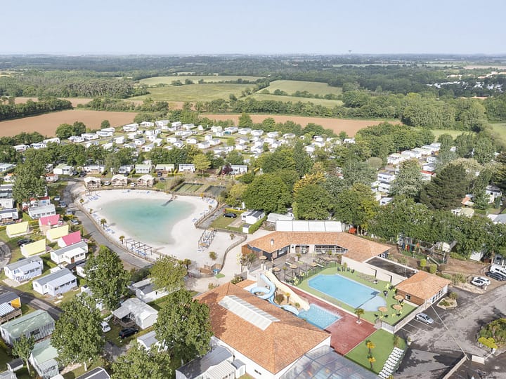 De camping ligt op ca. 5 km van de Atlantische kust in de buurt van een aantal badplaatsen. De weinige staanplaatsen zijn ruim en zonnig en voorzien van privésanitair met keukentje. Er is een lagune met een privéstrand en wit zand, een verwarmd binnenzwembad en een bubbelbad. Ook zijn er een openluchtzwembad, een buitenfitnessruimte, een peuterbad, waterspeeltuin, waterglijbanen en een grote speeltuin met glijbanen en andere attracties voor kinderen.