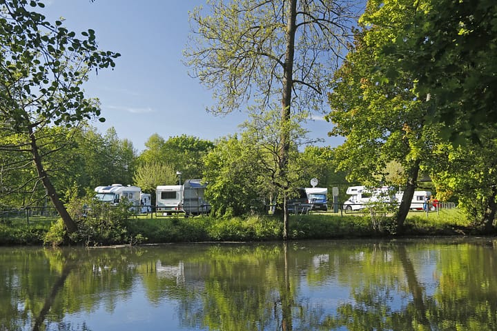 Deze parkachtige camping met rijke bloemdecoraties ligt aan de rivier de Fränkische Saale. Deze rivier is niet toegankelijk vanaf de camping. Op het terrein is een vijver en er staan veel loofbomen. Vlakbij, boven de camping, ligt een drukke autobrug. Het wellnesscentrum van de stad ligt op 0,5 km en is eenvoudig vanaf de camping te bereiken met een gratis pendelbus. Er zijn begeleide wandel- en fietsroutes en dichtbij ligt een tennisbaan. Extra kosten: milieukosten € 4,-, toeristenbelasting.