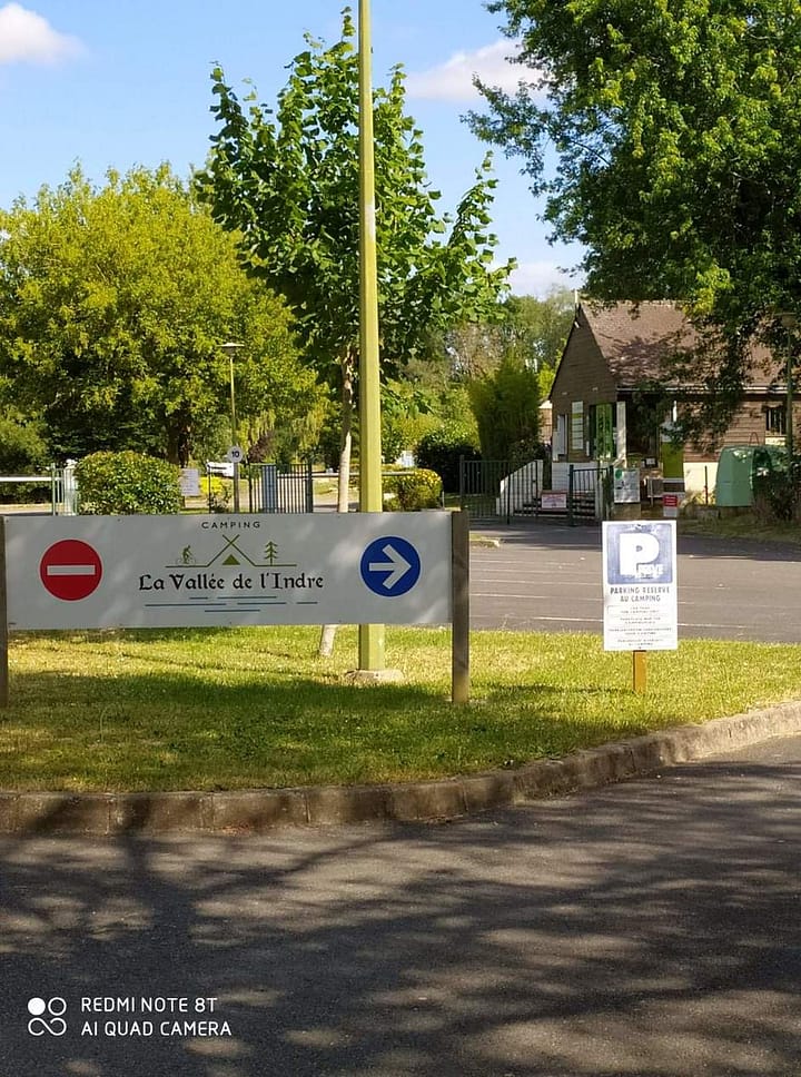 De camping ligt aan de rivier de Indre aan de rand van het stadje. Op het kampeerterrein staan veel bomen. De staanplaatsen hebben gras als ondergrond en liggen gedeeltelijk in de schaduw. Bij het eenvoudige zwembad staan enkele ligstoelen en parasols. Naast de camping liggen een restaurant, een speeltuin en sportvelden. Tours ligt op ca. 1 km fietsen vanaf de camping.