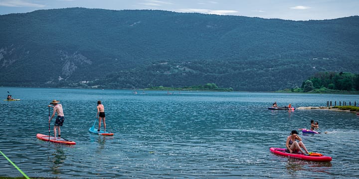 Deze vlakke, langgerekte camping heeft een eigen grasstrand aan het meer van Aiguebelette. Men kan er zwemmen, vissen en kanoën. Roeiboten zijn te huur. De camping richt zich op gezinnen met kinderen tot 19 jaar. De standplaatsen liggen aan twee paden en zijn afgebakend door bomen die voor schaduw zorgen. Er is weinig privacy.