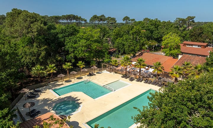 Camping bij , Zuid-West Frankrijk in Frankrijk. Zwembad met jacuzzi en ligbedden. Rijke en gevarieerde thema-avonden. Op 2km van het strand. Proef de lokale gastronomie van Landes.
