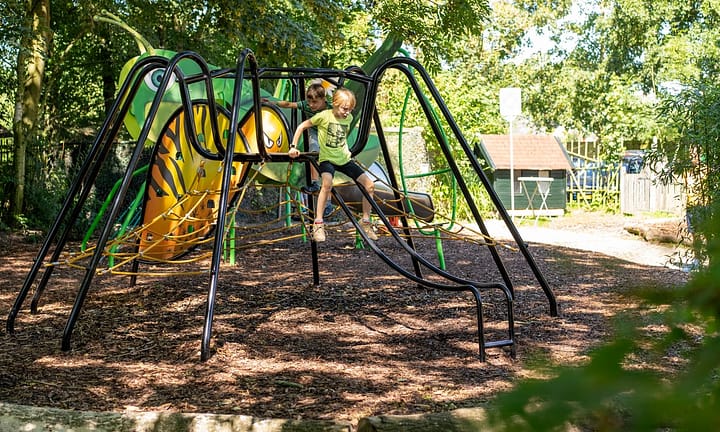 Camping bij , Groningen in Nederland. Autovrij park met alleen maar glampingtenten. Meerdere speeltuintjes tussen de tenten. Take-away en broodjesservice. Een dagje naar Schiermonnikoog met de boot.