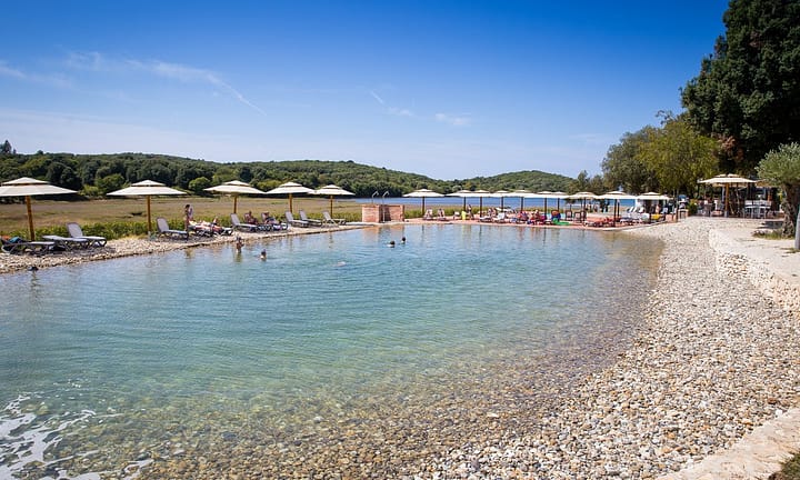 Camping bij , Istrië in Kroatië. Direct aan de heldere Adriatische Zee. Modern en comfortabel. Ontspanning bij de wellness-faciliteiten. Dagje naar het nabij gelegen Rovinj.
