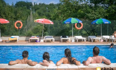 Camping bij , Costa Brava in Spanje. Kleine camping. Zwembad. Bar-restaurant. Op het Catalaanse platteland.