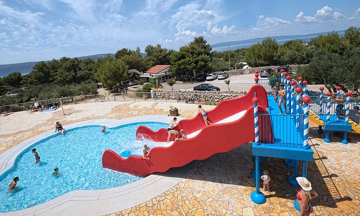 Camping bij , Eilanden Cres-Losinj in Kroatië. Kiezelstrand. Zwembadcomplex met glijbaan. Duikcursussen. Op loopafstand van de stad Cres.