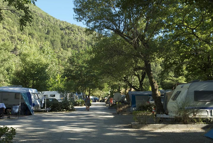 De camping ligt aan de rivier Eygues en heeft veel schaduwrijke plaatsen. De staanplaatsen hebben uitzicht op de omringende bergen en bevinden zich deels aan de oever van de rivier. Er zijn een boulodrome (overdekte jeu-de-boulesbanen) en een centrale barbecueplaats. De snackbar is alleen geopend in het hoogseizoen. In de rivier kunnen campinggasten pootjebaden en poedelen, enigszins afhankelijk van de waterstand. Er zijn grote kiezels langs de rivier. De camping is geschikt voor rustzoekers.