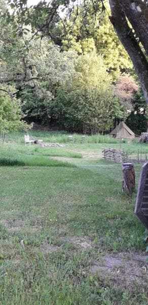 Omheinde wilde tuin toegankelijk te voet, met de fiets voor gratis bivak of mini-verblijven van maximaal 3 nachten in autonomie. Een zelfbeheerd droogtoilet, drinkwater, hout voor BBQ of vuur aanwezig. Mogelijkheid om een batterij op te laden, een ijspak opnieuw in te vriezen, campinggas te gebruiken of een warme douche te nemen met financiële deelname, als ik aanwezig ben om u te verwelkomen. Plaats van genezing en delen. Akoestische muziekinstrumenten, liedjes, spelletjes, gelach en feestelijke sfeer welkom, zeer redelijke consumptie van alcohol. Met respect voor de plaats en de buurt, stilte van 22u tot 7u.