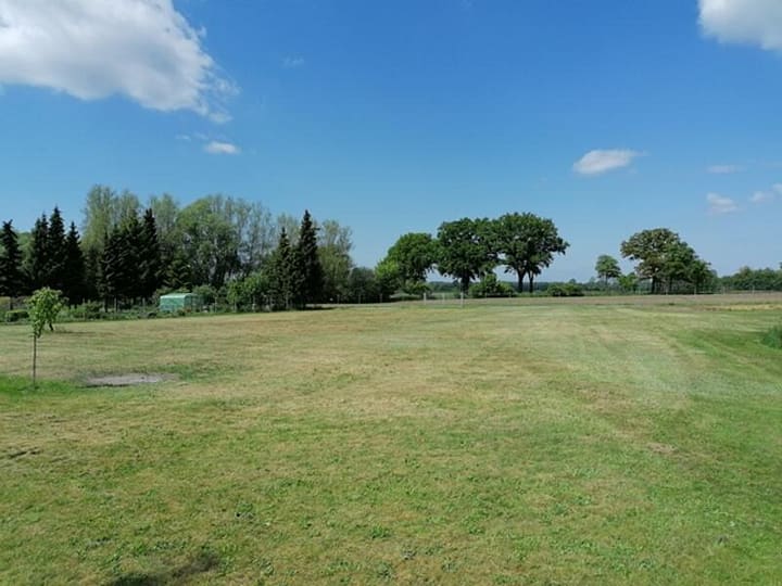 Natuurcamping in de buurt van de Mecklenburg Elbe-vallei Welkom op mijn camperplaats die op een omheind privéterrein staat. Hier heb je genoeg ruimte om te genieten van de natuur op een groen terrein van 3000 m². Drinkwater, toilet en stroomvoorziening zorgen voor het nodige comfort. De plek wordt aangeboden voor natuurliefhebbers die de drukte van het massatoerisme willen vermijden. Ideaal voor kampeerders die een tussenstop willen maken op hun reis door onze prachtige deelstaat Mecklenburg-Vorpommern. De parkeerplaats wordt ook aanbevolen voor een langer verblijf om de natuur en de levensstijl op het platteland te ervaren. Voor ontdekkingsplezier Groß Krams ligt in het “Griese gebied”. Het Griese gebied is een oud cultuurlandschap in het zuidwesten van Mecklenburg tussen Hagenow, Ludwigslust en Dömitz. De staatsstoeterij Redefin bevindt zich in de naburige gemeente Groß Krams. Groß Krams ligt in een bosrijke omgeving tussen de rivieren Sude, Elde en Elbe. Het zacht glooiende gebied daalt ten westen van Groß Krams naar de brede vallei van de Sude. Ten zuidwesten van de gemeente ligt een in onbruik geraakt militair oefenterrein met een zeer mooi heide- en duinlandschap, ideaal om te wandelen en te ontdekken.