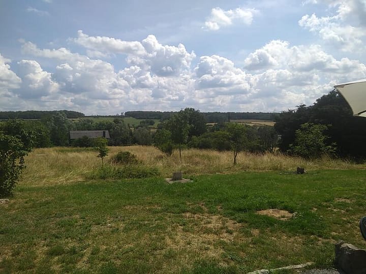 Groot, rustig perceel in een privéwoning, op 5 minuten van Durbuy, de Condroz en zijn charmes liggen aan uw voeten. Wij heten u welkom in onze kleine oase van groen en rust. Groot stuk grond met keuze om zich te vestigen, wij zullen er zijn om u te verwelkomen en u te begeleiden. Gezien de grootte van de grond zijn de locaties gevarieerd en aan u de keuze. Het terrein ligt over het algemeen op een lichte helling, maar is niet hinderlijk voor kamperen. Begaanbaar pad voor voertuigen om te blijven. Land op het zuiden met weinig schaduw aanwezig. Om de rust en charme van de plaats te behouden, accepteren we geen groepen die ’s avonds laat willen feesten. Badkamer boven in huis met ligbad en douche alleen toegankelijk als ik in huis ben. Toilet separaat toegankelijk 24/7. Uitgeruste keuken toegankelijk op de begane grond van het huis. Alle serviesgoed en keukenaccessoires aanwezig. Elektriciteit geleverd via verlenging maximaal 20 meter van de woning. Jacuzzi ter plaatse beschikbaar van mei tot september, vast tarief van € 15,- per dag voor gebruik (niet verplicht, zie service) Een wereld van wandelingen en ontdekkingen wacht op u in de Condroz de Somme-Leuze. Op 5 minuten van Durbuy en 15 minuten van Marche-en-Famenne geniet u zowel van het comfort van toeristische plaatsen en steden als van de charme van het platteland. Wij hebben 3 katten en 1 hond als huisdieren. Voor hun gemoedsrust accepteren wij geen andere dieren. Afgezien van de regels van respect voor de buurt volgens gemeentelijke regelgeving, geen aanvullende regels, gewoon respect voor iedereen. Tot binnenkort.