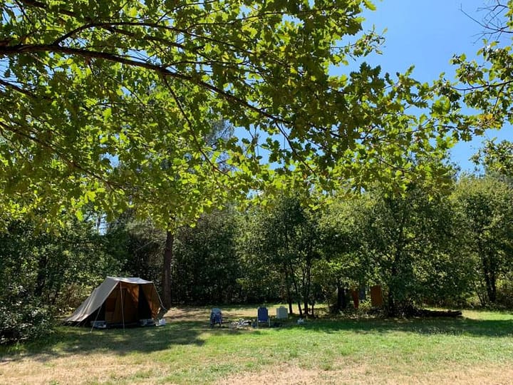 Onze rustige camping met zes plaatsen ligt op een grote open plek in het bos op ons 6,5 hectare tellende landgoed. Gelegen op het platteland temidden van wijngaarden, akkers en bos heeft Au Chêne Vert het karakter van een ‘camping à la ferme’.