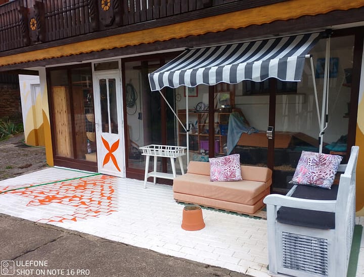 BBQ, Drinkwater, Warm water, Afwasbak, Keuken, Basis kookmaterialen, Koelkast, Borden en bestek, Koffie en thee, Eettafel, Waterkoker, Koffiezetapparaat, Vuurschaal, Brandhout beschikbaar, WiFi, Hangmat, Sfeerverlichting, Toilet, Warme douche, Koude douche, Elektriciteit, Telefoon oplaadpunt, Overdekte keuken, Regenschuilplaats, Speelplaats voor kinderen, Dieren op het terrein, Parkeren op het terrein, Uitzicht op de velden, Uitzicht op de heuvels, Uitzicht op het bos, Uitzicht op zonsondergang, Buiten zitgedeelte, Binnen zitgedeelte, Picknicktafel, Afvalverwerking, Barrièrevrije toegang tot de kampeerplaats, Fietsenstalling