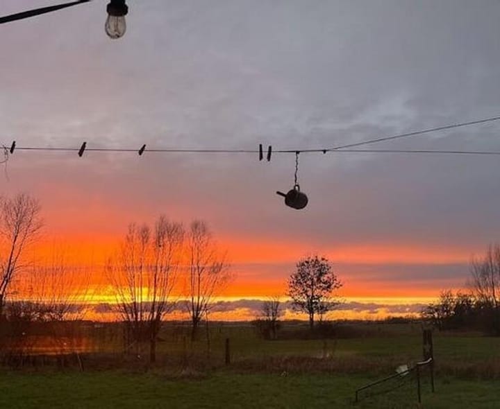 Drinkwater, Afwasbak, Koelkast, Vuurkorf, Vuurschaal, Brandhout beschikbaar, Sauna, Zwemvijver of rivier, Hangmat, Toilet, Elektriciteit, Telefoon oplaadpunt, Huisdieren toegestaan, Regenschuilplaats, Uitzicht op de velden, Uitzicht op zonsondergang, Picknicktafel, Afvalverwerking, Paarden toegestaan, Fietsenstalling
