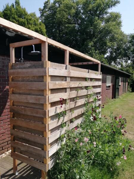 Bijzondere Voorzieningen: Een warme buitendouche met prachtig uitzicht over de landerijen zorgt voor een unieke en uitnodigende ervaring. Een prachtige theetuin en landelijk terras, een overdekte binnenruimte zorgen voor unieke zitplekjes.